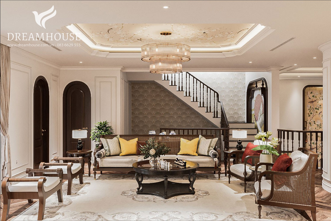 Một số đặc trưng của thiết kế phòng khách 30m2 phong cách Indochine như: