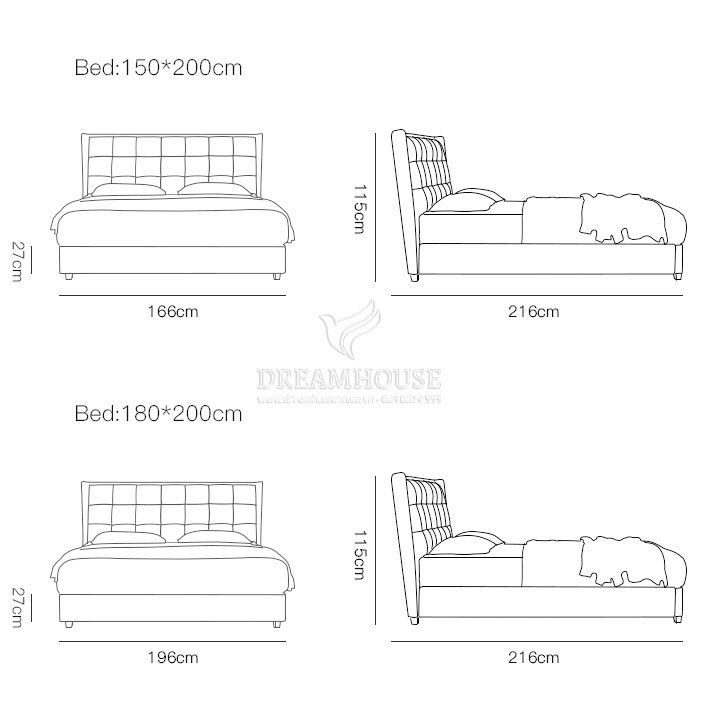 - Kích thước: 1400 x 2000mm, 1600 x 2000mm, 1800 x 2000mm, 2000 x 2200mm