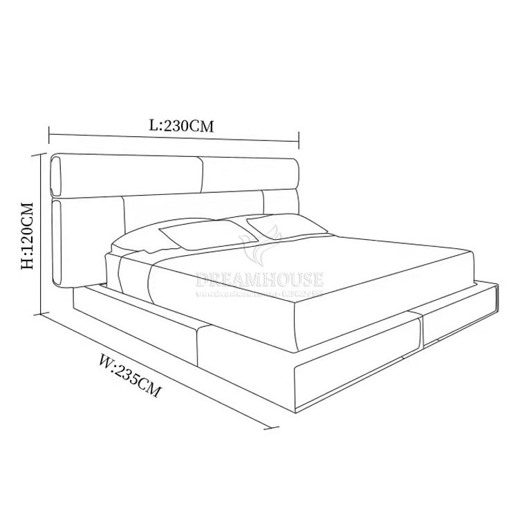 Phần chân của chân được làm bằng chân gỗ chắc chắn, được Dreamhouse tuyển chọn kỹ lượng, thêm vào đó đầu giường dựa xuống sàn và có các gối đỡ lực đẩy riêng, cũng được làm bằng gỗ nguyên khối, tăng thêm độ vững chắc và chắc chắn cho chỗ ngủ. Toàn bộ giường được bọc vải nỉ cao cấp, nhưng bạn vẫn có thể yêu cầu Dreamhouse chuyển sang dạng da hoặc bất kỳ chất liệu bọc giường nào khác. Khung giường được đặt đóng bằng gỗ tự nhiên cao cấp tuân theo tiêu chuẩn khí hậu và thời tiết ở Việt Nam.
