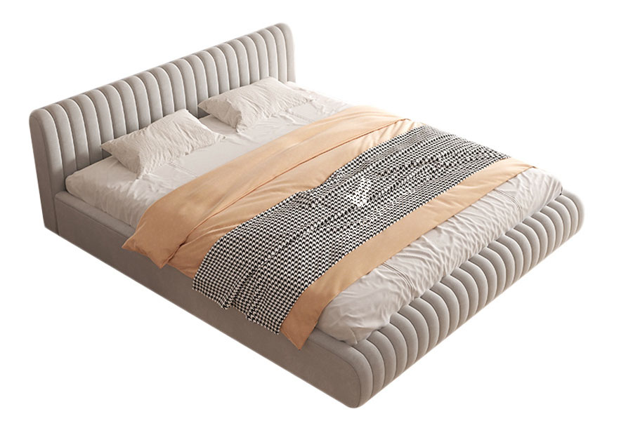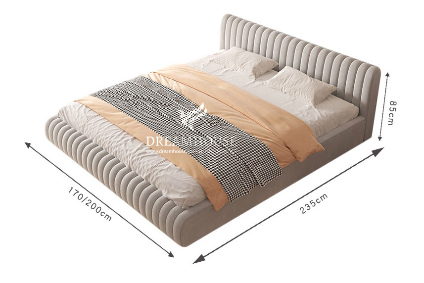 Toàn bộ chiếc giường được bọc nhung màu kem với thiết kế sang trọng khiến chiếc giường trở thành tâm điểm của buổi trình diễn. Đầu giường có đệm hỗ trợ lưng bạn khi bạn say sưa xem TV trên giường hoặc đọc sách.