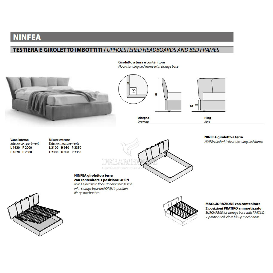 - Bạn sẽ phải phối hợp chiếc giường này với phần còn lại của đồ nội thất phòng ngủ theo một ý tưởng cụ thể về phong cách, có tính đến thực tế là Ninfea của thương hiệu này rất hiện đại.