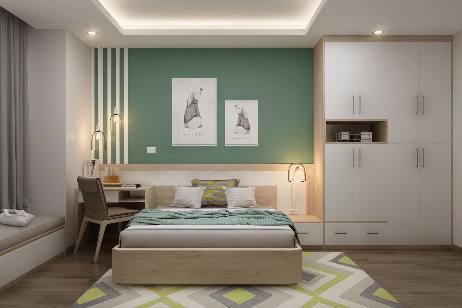 Quy mô: phòng ngủ rộng 40m2Phong cách thiết kế: Hiện đại