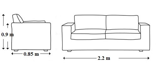 Kích thước thông thường của ghế sofa ba chỗ ngồi.