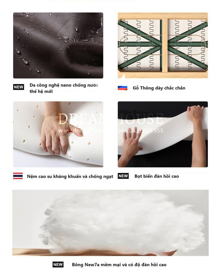 | Lò xo & mút | Lò xo nhập khẩu, Mút lót D40 nhập khẩu |