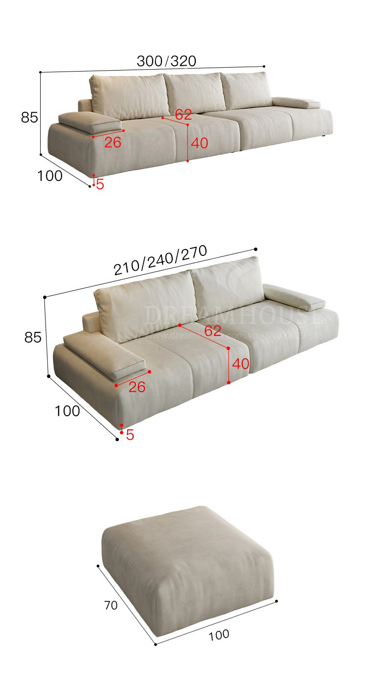 - Kiểu dáng, kích thước phù hợp: Dreamhoues luôn sản xuất những mẫu Sofa có kích thước tiêu chuẩn như: văng 2m2, 2m4, 2m5, 2m7, nhưng bên cạnh đó Chúng tôi cũng cung cấp dịch vụ may đo theo nhu cầu khách hàng, mỗi chi tiết bộ phận đều có thể điều chỉnh tùy thuộc vào nhu cầu của Khách hàng.