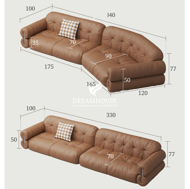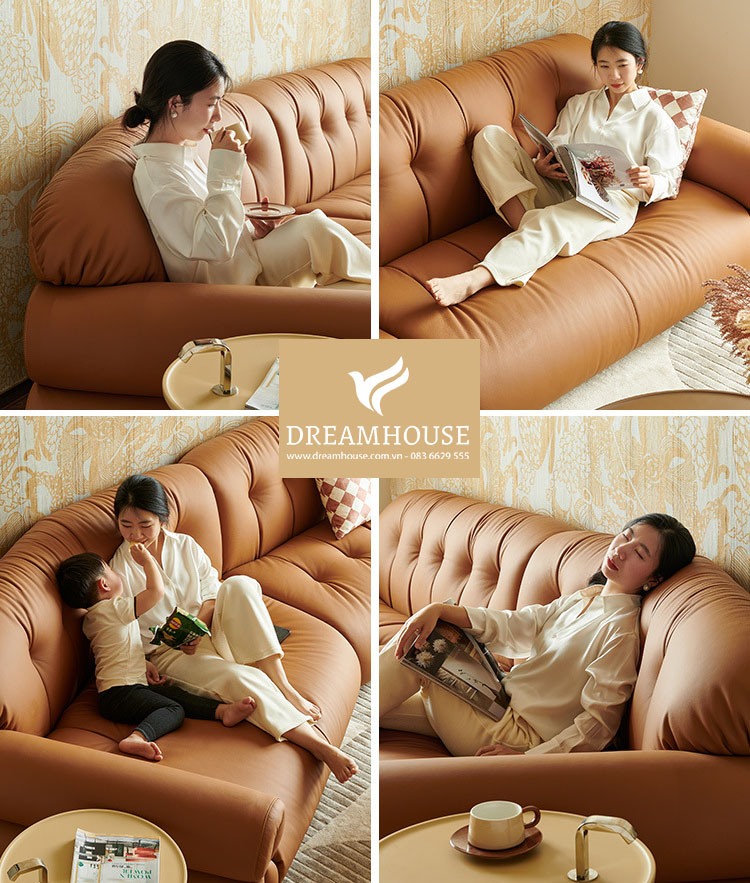| Chất liệu | Da bò thật, Da Microfiber cao cấp, Chân gỗ tự nhiên chống ăn mòn, Da Boss nhập khẩu Đức |
