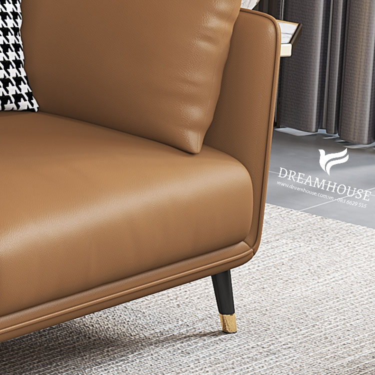 Mẫu ghế sofa da đẹp của Dreamhouse sở hữu vẻ đẹp tinh tế với các đường nét mạnh mẽ hiện đại cùng gam màu nâu sang trọng. Ghế có phần tựa lưng khá cao, trong khi đó, 2 bên tựa tay được thiết kế khá mảnh, tạo độ thoáng cho ghế và nét độc đáo theo kiểu Ý.
